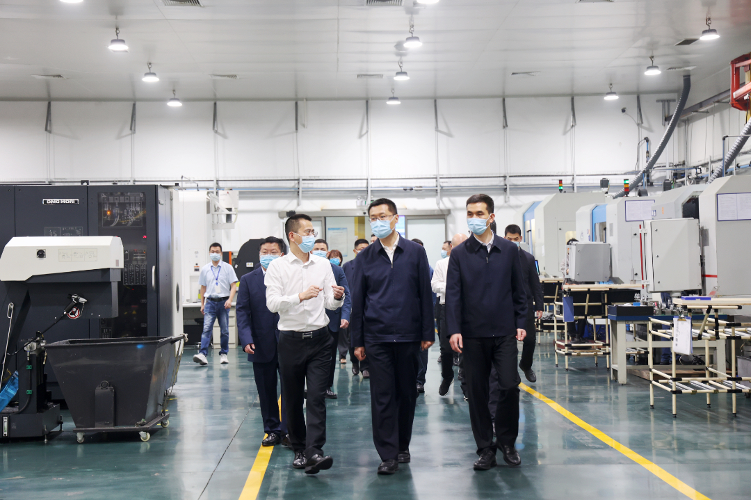 最后,盧副省長一行參觀了解了車間生產管理以及信息和智能化應用情況。李孝評總經理表示,在“以數字化引領制造業高質量發展”的背景下,天信智能制造獲得浙江省“智能工廠”榮譽稱號,并以其數字化建設標準,進行裝備數字化、管理數字化等建設,投入工業機器人、智能物流裝備、自動加工及檢測設備,集成MES、ERP等信息化系統,構建高度智能化、柔性化和敏捷化生產線使工人數大幅減少,降低了生產成本、提高了生產效率,企業競爭力和綜合效益穩步提升。